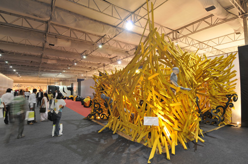Drawing from the works of Dan Havel, Will Alsop and Arnie Quinze, this installation at IFJ show-MMRDA grounds-BKC, was a response to the peculiar urban condition of Mumbai city. Created entirely out of recycled wood from Kurla Bhangar Market, it assured to make you pause and consider. |